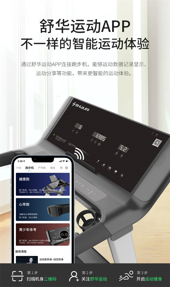 舒華I5智能家用跑步機(jī)是由舒華體育聯(lián)合中國(guó)體育科學(xué)學(xué)會(huì)、上海體育大學(xué)運(yùn)動(dòng)科學(xué)學(xué)院教授陸大江等權(quán)威機(jī)構(gòu)、專(zhuān)家共同研發(fā)設(shè)計(jì)。獨(dú)特之處在于它結(jié)合國(guó)際科學(xué)跑步研究理論,能夠針對(duì)不同用戶(hù)進(jìn)行運(yùn)動(dòng)能力測(cè)試,并根據(jù)測(cè)試結(jié)果生成因人而異的有氧運(yùn)動(dòng)處方。這意味著每個(gè)用戶(hù)都能得到一個(gè)適合自己的運(yùn)動(dòng)方案,從而更好地達(dá)到運(yùn)動(dòng)效果。這一創(chuàng)新技術(shù)可以確保用戶(hù)在運(yùn)動(dòng)過(guò)程中能夠保持在最佳的區(qū)間狀態(tài),從而提高運(yùn)動(dòng)安全性和有效性。
